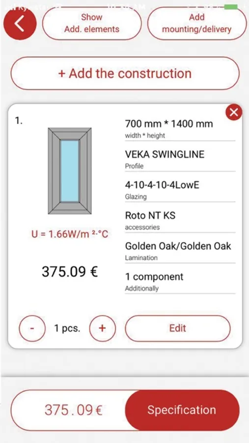 - An U Factor (Heat Transfer Coefficient) displaying for designed