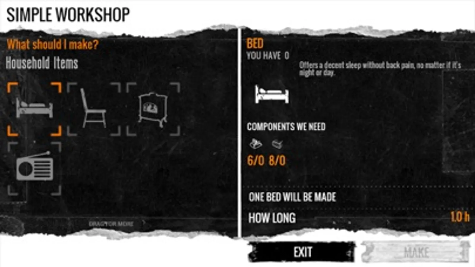 • Craft weapons, alcohol, beds or stoves – anything that helps you survive