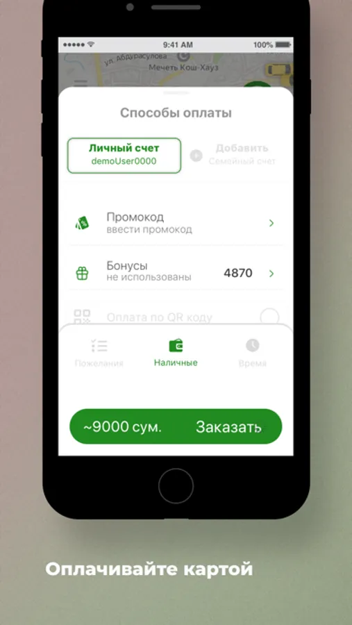 QR-код для оплаты любым банковским приложением будет доступен в конце поездки у водителя.