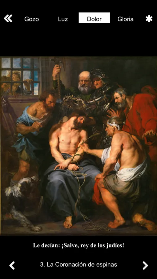 Aplicación que sirve de ayuda para la contemplación de los misterios del Rosario, mediante obras de arte.