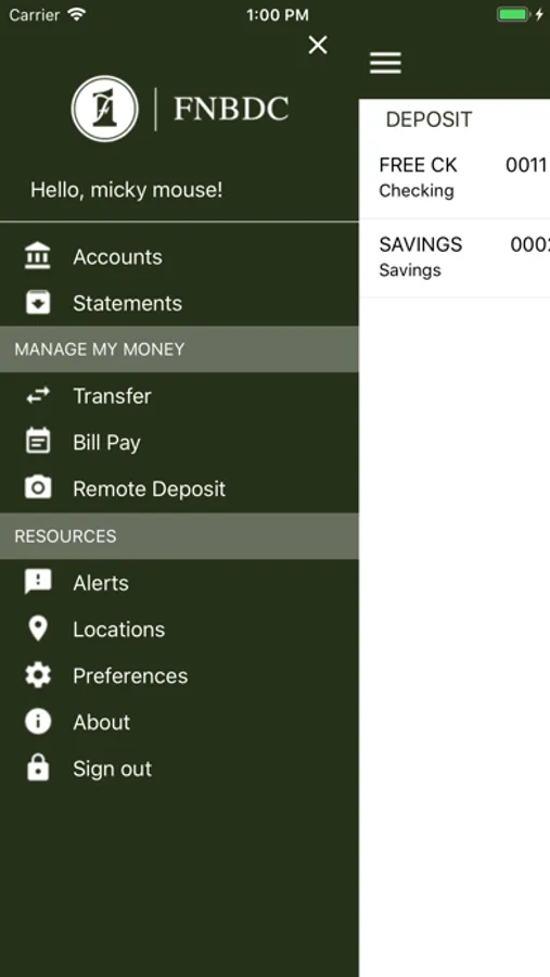 FNBDC Mobile Banking supports all account types including checking, certificates-of-deposit, money markets, loans, and lines-of-credit.