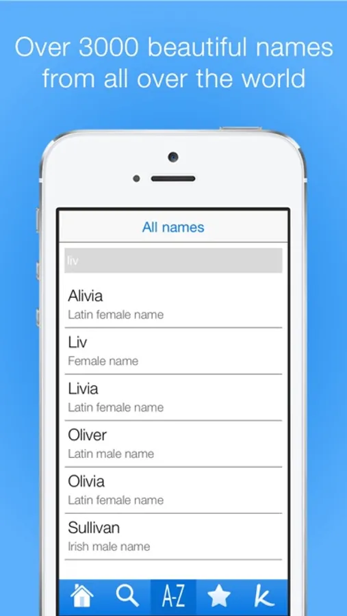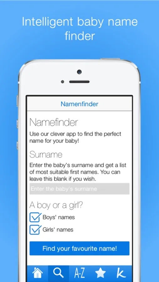 Our baby-name-App searches and filters for you over 3000 names through a wide variety of search criteria. In addition it provides a good coverage of background knowledge of the names, which will help you in making the final choice.