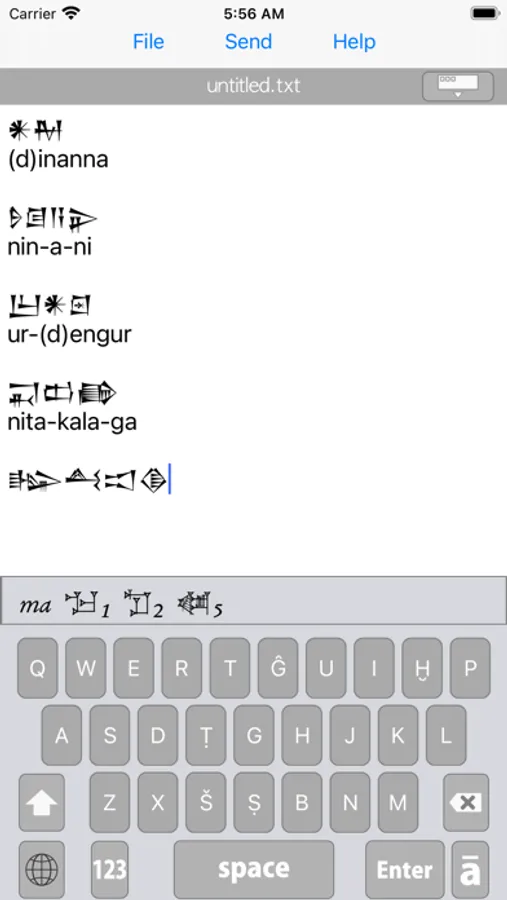 This app includes a custom cuneiform keyboard.