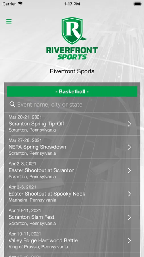 The Riverfront Sports Scranton app will provide everything needed for team and college coaches, media, players, parents and fans throughout an event.