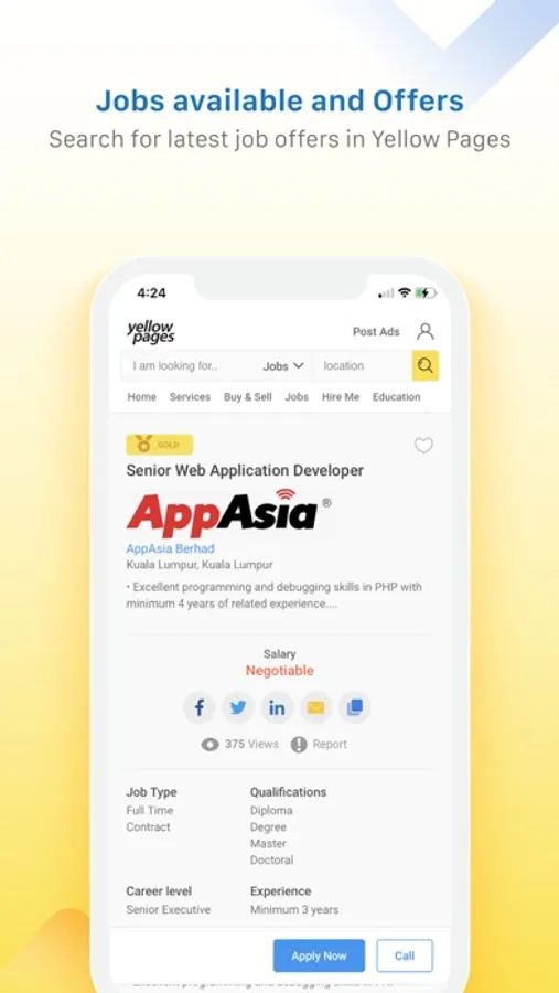 For your complete directory search needs. The power of the Yellow Pages Malaysia search engine is now available at your fingertips – anytime, anywhere. Experience a brand new customizable search that has been optimized for mobile.