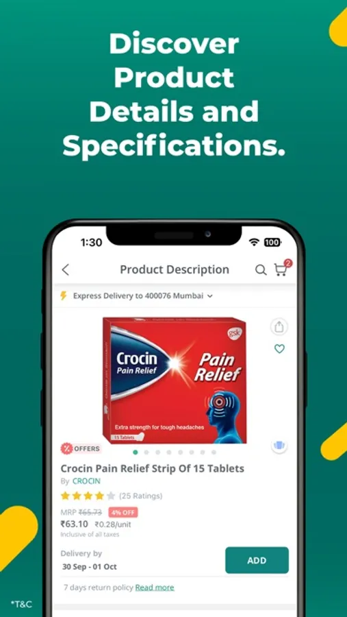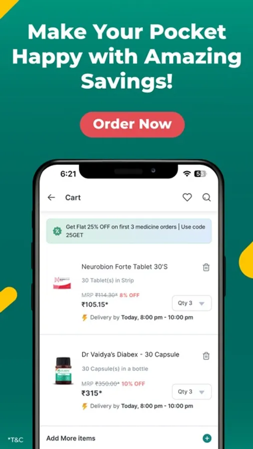You can purchase medicines online & get it delivered to your home within 24-48 hours in select cities. Download the app now to take care of all your healthcare needs with an added discount.
