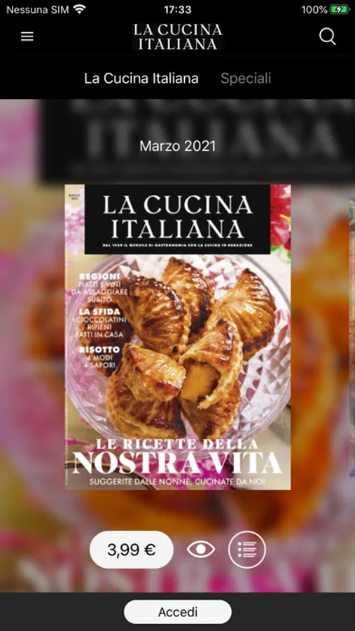 L’app ti permette di leggere La Cucina Italiana acquistando la singola copia o sottoscrivendo un abbonamento con diverse formule che potrai gestire comodamente dal tuo account Apple.
