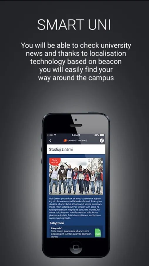 The SmartUni app is an innovative, interactive guide for all present foreign students and all those who wish to become the students of University of Lodz. The app will let you adapt to your new exciting surroundings in a heartbeat. You will always be up to date with University events and student activities outside the campus. In SmartUni you can check your schedule, you will be able to check university news and thanks to microlocalisation technology based on beacons you will easily find your way around the campus.