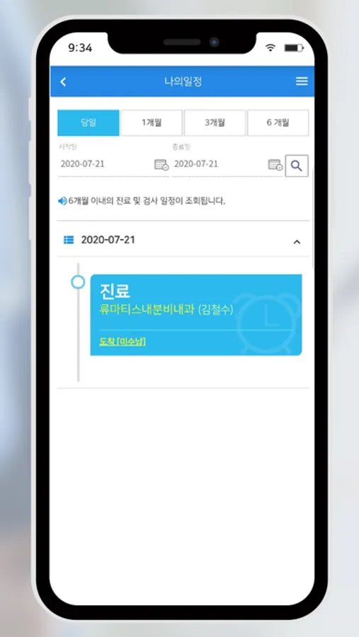 - 내일정 : 예정된 진료, 검사 등의 일정을 한 번에 볼 수 있습니다.