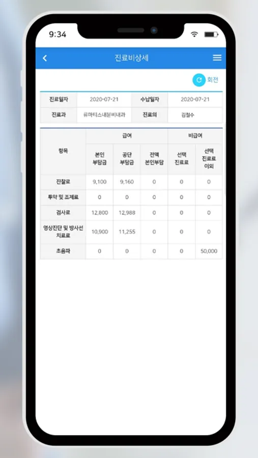 - 진료내역 : 과거 진료내역 및 진료비에 대한 상세 정보롤 확인할 수 있습니다.