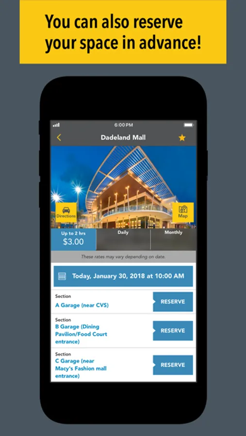 Park like you own the place! Get the best parking spot - fast and easy. Park next to your favorite store at the mall, near your gate at the airport, or on the 1st level at your garage. No more driving up and down aisles or stalking other patrons. You can even reserve a spot in advance!