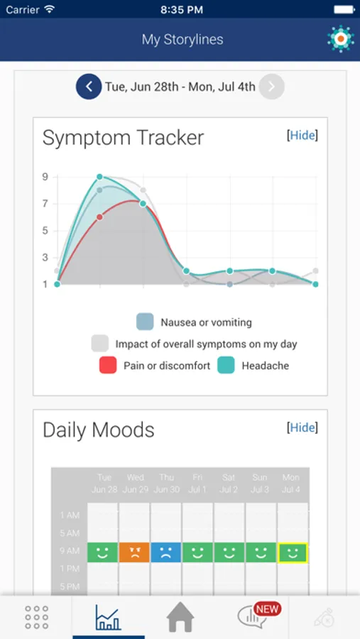 Every captured event is summarized in a simple view called “My Storylines.” Choose what you want to track, and choose what you want to share with your care team or your loved ones.