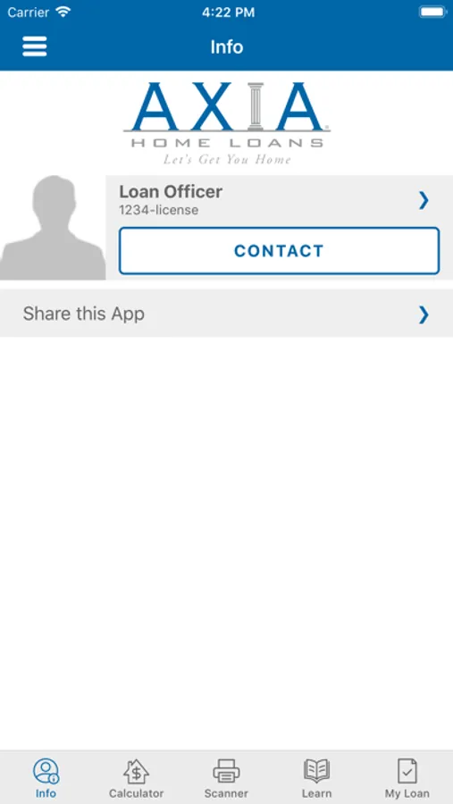 Contact: Easily locate contact information for your Loan Originator and Real Estate Agent