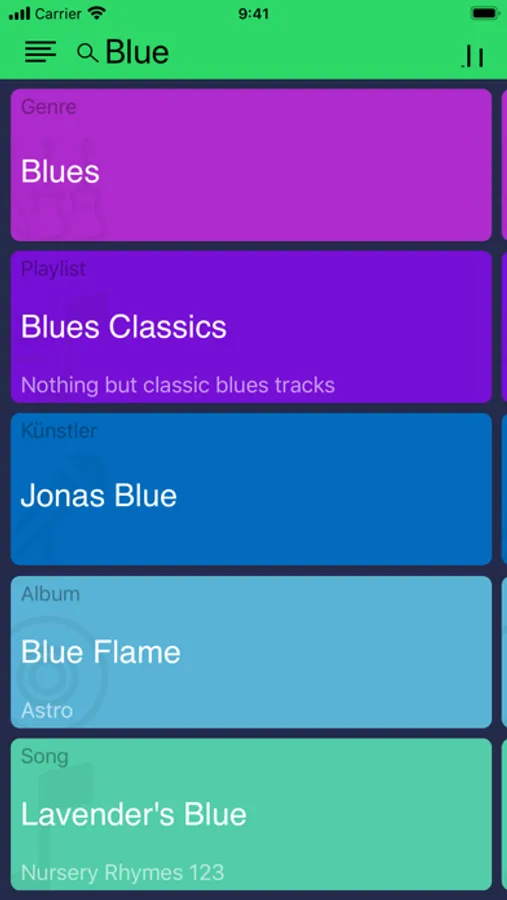 - Swipe cards to find your favorite music