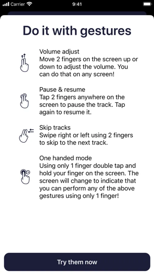 - Tap with two fingers to start/pause music