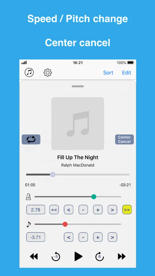 This music player can control speed/pitch in real-time WITHOUT importing binary data of the song into this app.