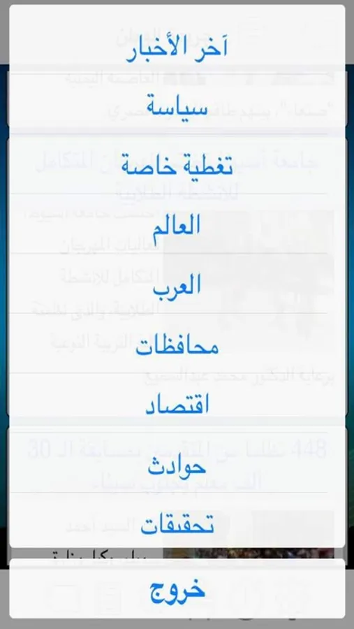 - امكانية عرض اى فئة من الاخبار بطريقة سريعة (سياسة-اقتصاد-فن-......)