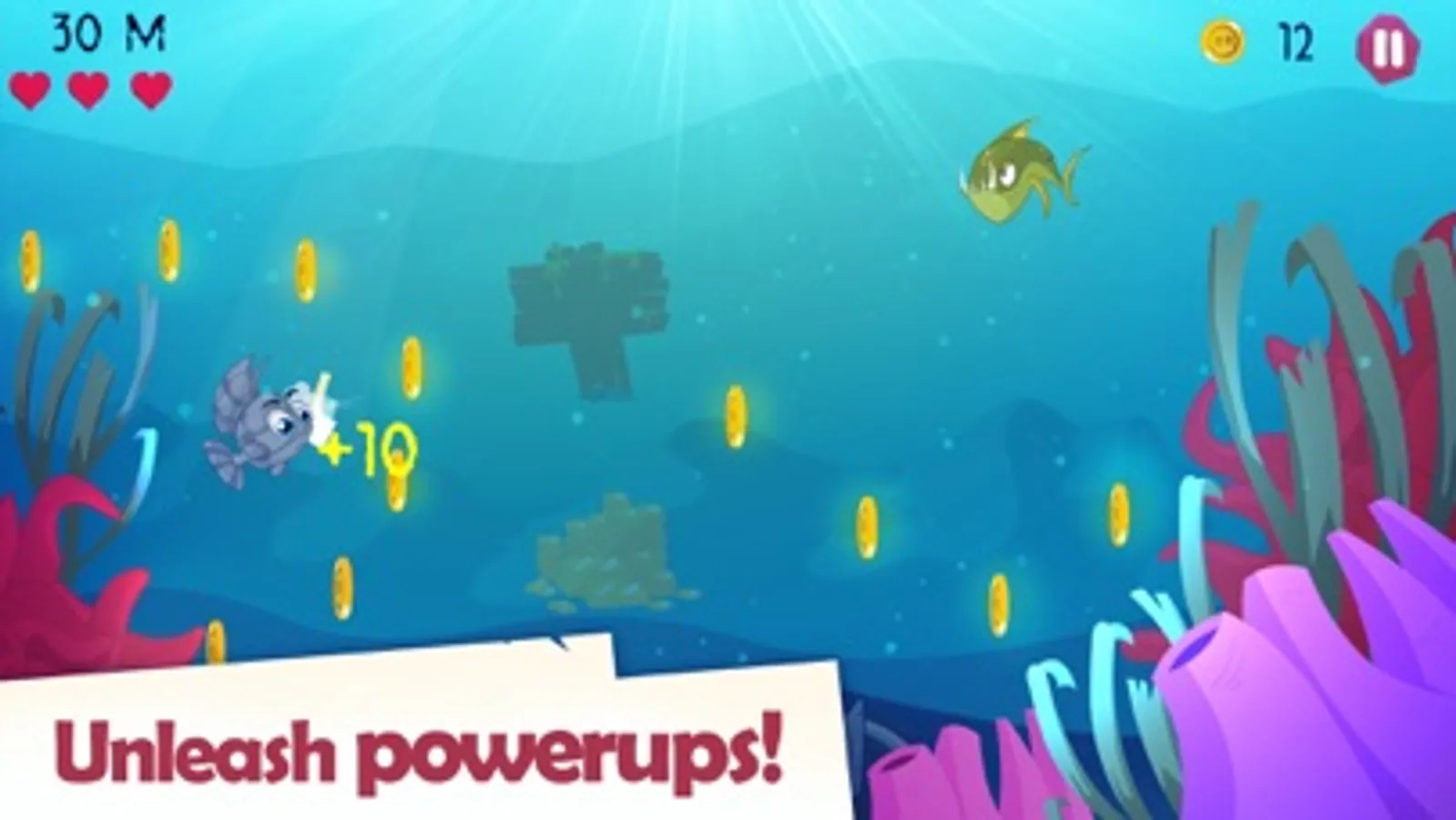 Help Leo survive from these dangerous predators .. Leo Escape is a fun endless runner style game that features a variety of obstacles, creatures, and Challenges. Just swim Leo for the maximum time as you can, collecting coins along the way and Diamonds to buy upgrades and power-ups to help you survive the dangers of the Sea.