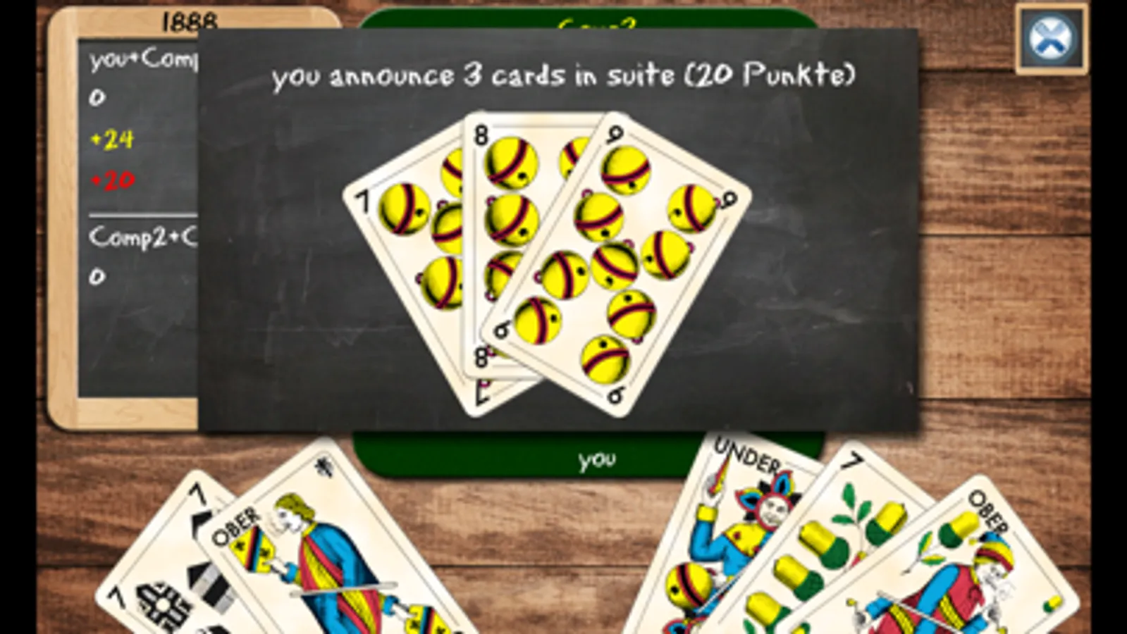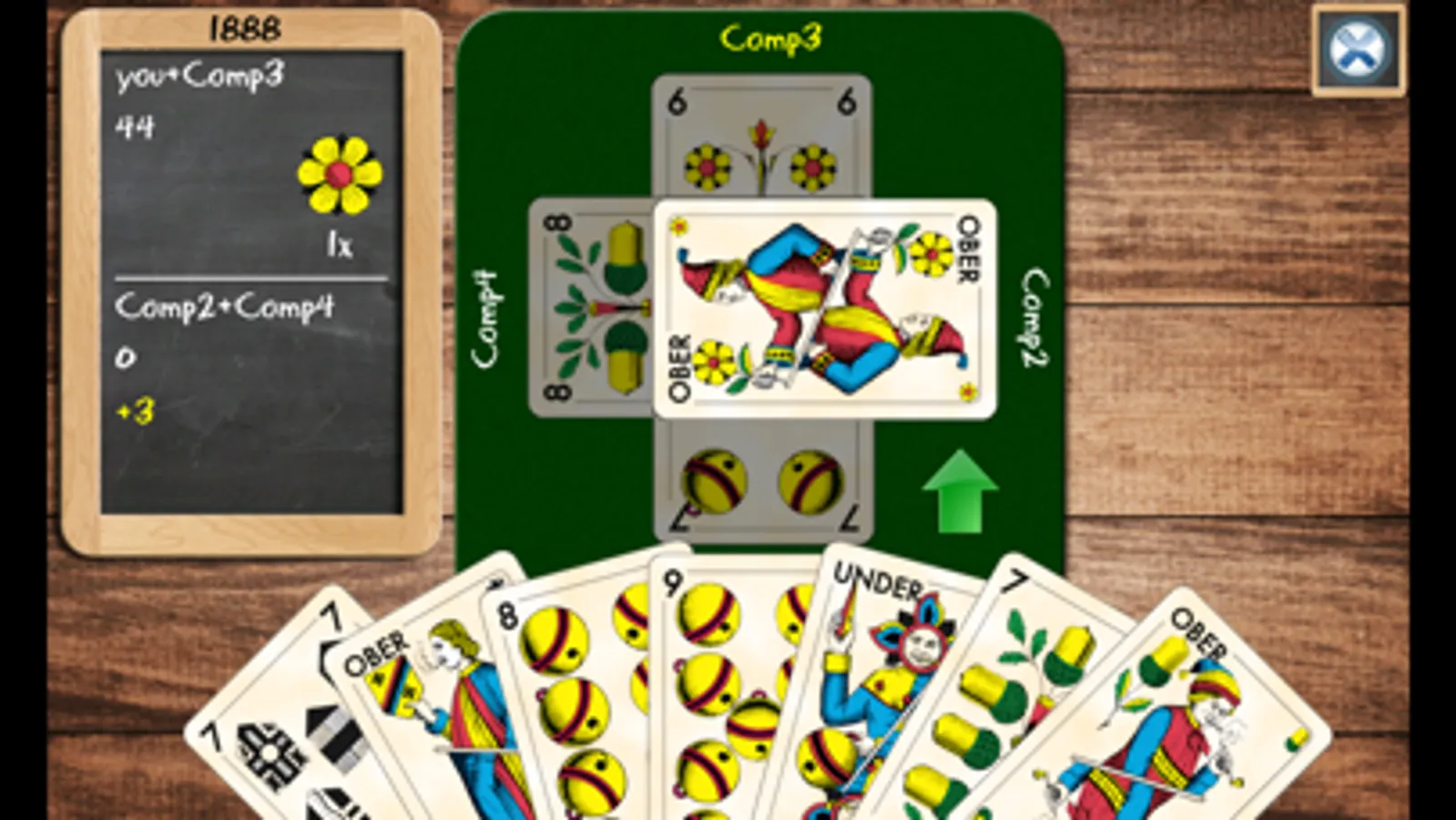 Play the Swiss national card game on your smartphone or tablet whenever and wherever you want.