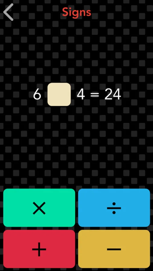 • Signs - Choose the correct mathematical Sign to solve the equation