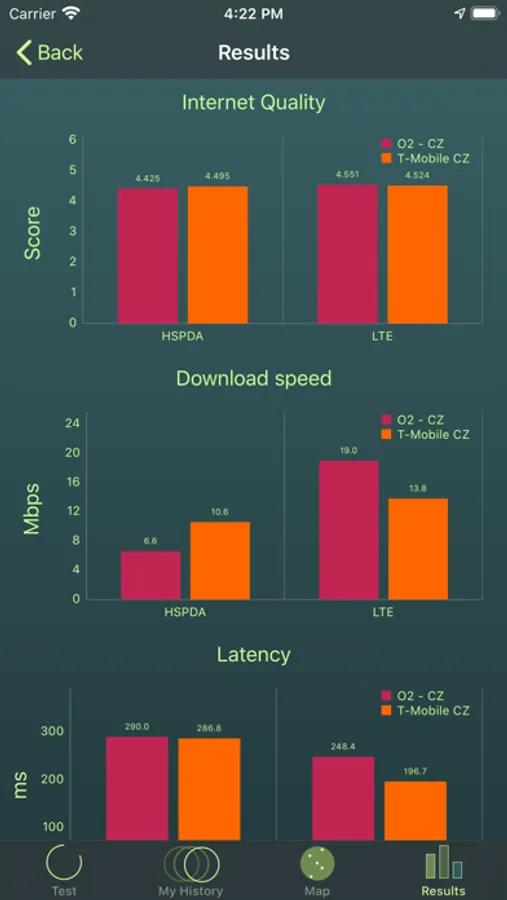 The app will upload information about every single measuring performed by the user to an online database. Users can then download all this data to the in-app map screen where a map of the user’s area Internet quality is shown. The possibility to set up filters based on radio technology or mobile operator in his country is also built in.