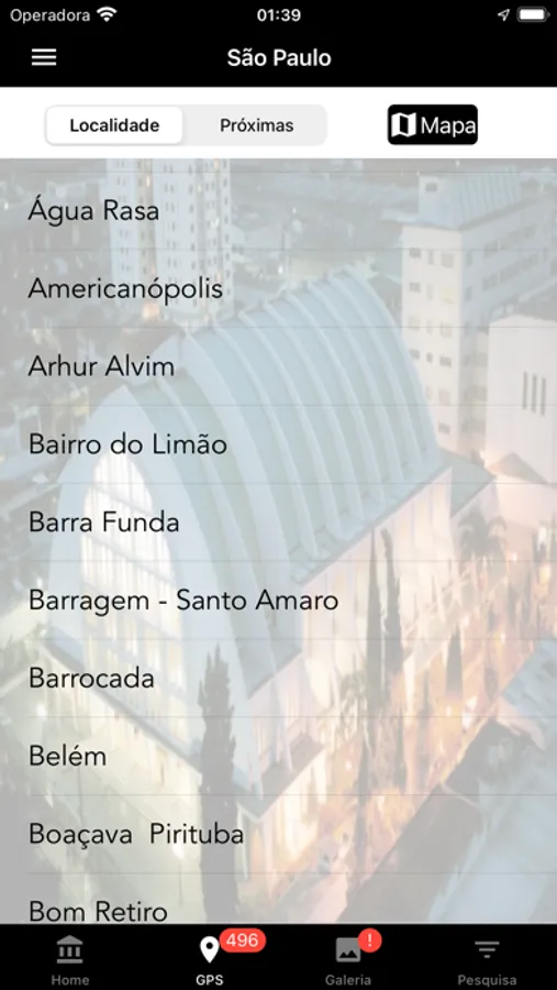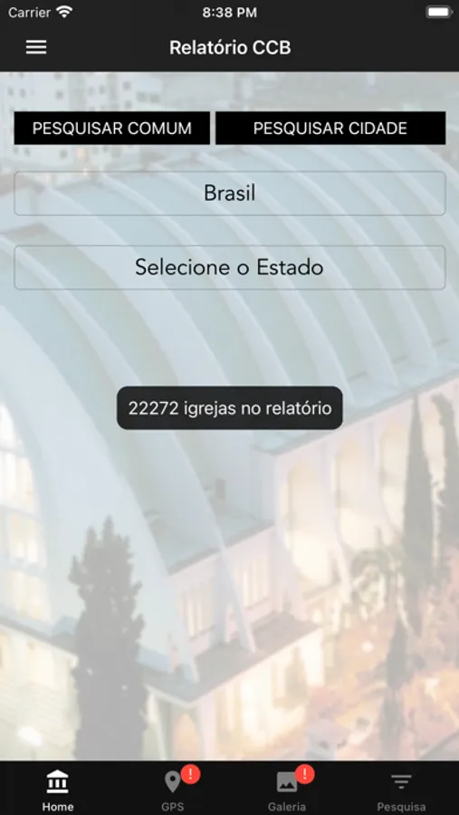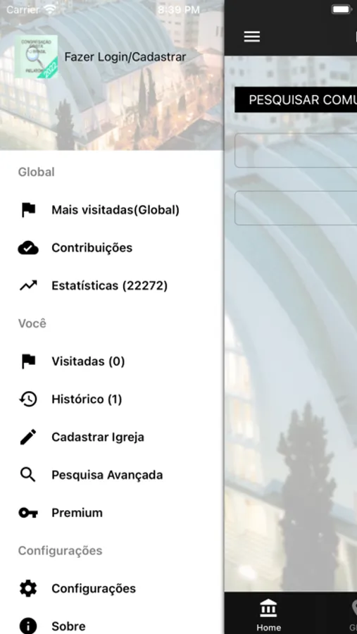- Filtre 'Com culto hoje', 'Central', dias da semana e turnos do dia;