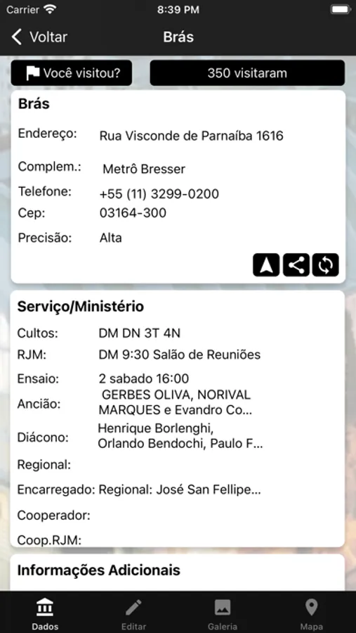 - Endereço, dias de Cultos, ensaio, reunião de jovens, ministério, parte musical, situação e localidade da igreja e muito mais dados!