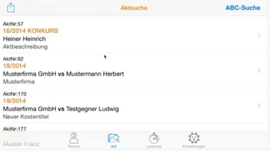 Die App bietet jederzeit und überall einen Einblick in die Aktstammdaten (beteiligte Personen samt Rolle, Federführer, Bemessungsgrundlage …). Auch bei den dem Akt zugeordneten Personen sind Aktionen wie direkte Anrufe, E-Mail, SMS etc. möglich. Natürlich kann die Leistungserfassung auch direkt im Akt vorgenommen werden. Im Gerät wird die Liste der zuletzt verwendeten Akten gespeichert, sodass bei nicht vorhandener Internetverbindung diese zur Leistungserfassung hergezogen werden.