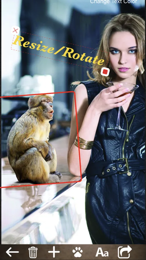 Enjoy more than 60 animals to paste on your photos. The app includes many animals such as lion, tiger, rhino, giraffe, goat, sheep, cow, guinea pig, monkey, gorilla, camel, elephant, penguin, bear, crocodile, owl, deer, ostrich, reindeer, pig, donkey, squirrel, leopard, zebra, etc.