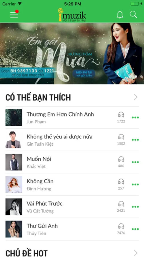 Các tính năng của ứng dụng nghe nhạc Imuzik Viettel: