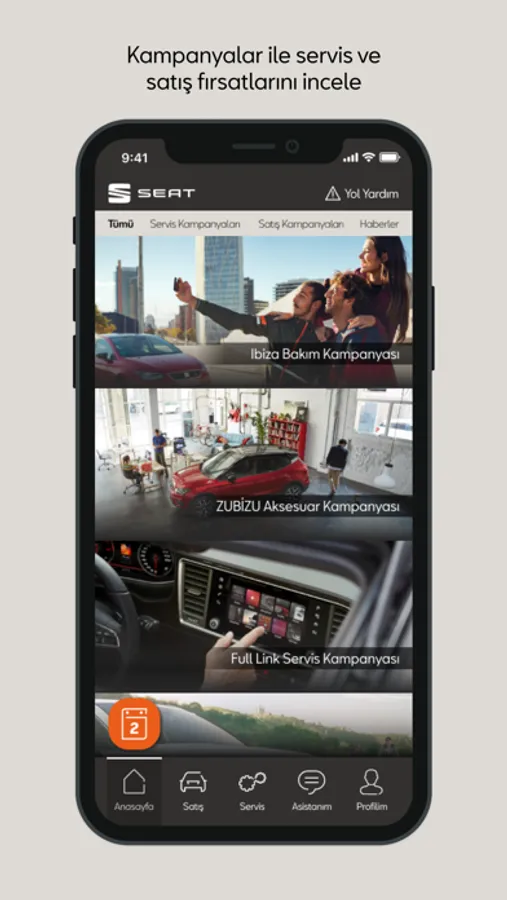 SEAT Online üzerinden güncel kampanyaları görüntüleyebilir, servis hizmetlerinizle ilgili bilgi alabilir, online randevu oluşturabilirsiniz. Tüm bu hizmetler için SEAT Online uygulamasından üye girişi yapabilirsiniz.