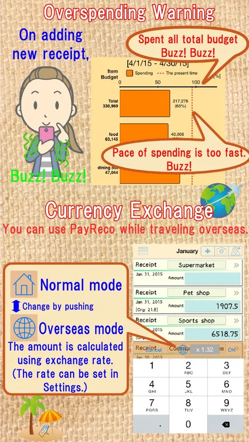 PayReco warns by vibrating twice. (Buzz! Buzz!)
