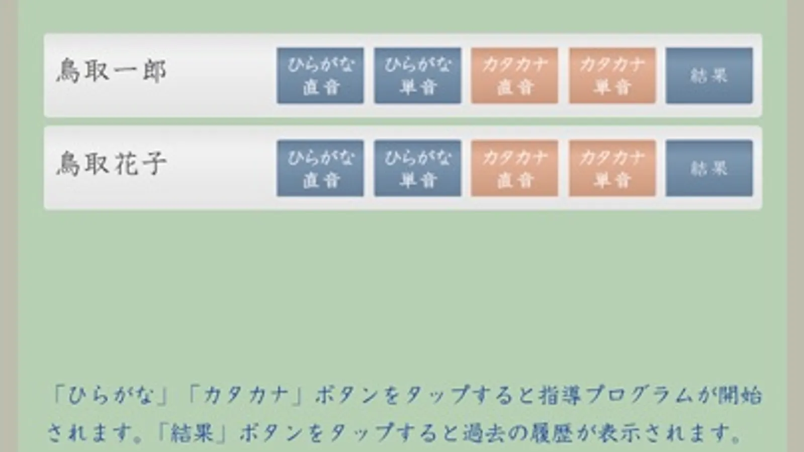 この単音指導アプリは、解読指導のために開発されました。指導者や保護者の方がお子さんと一緒に「ひらがな」と「カタカナ」の発音と文字の関連付けを練習できるようにデザインされています。また、練習結果の履歴を見ることで練習の成果を定量的に把握する事が可能になっています。