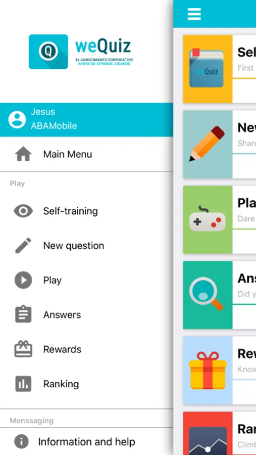 weQuiz es un sistema de aprendizaje por error en forma de juego/app, que sirve a las empresas como herramienta de transferencia del conocimiento de los trabajadores.