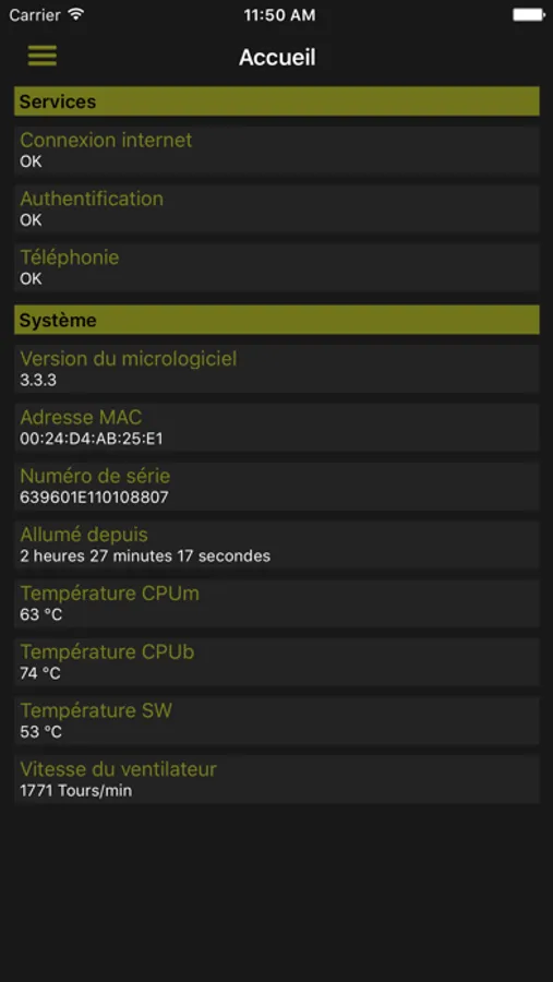 - l'état de la freebox