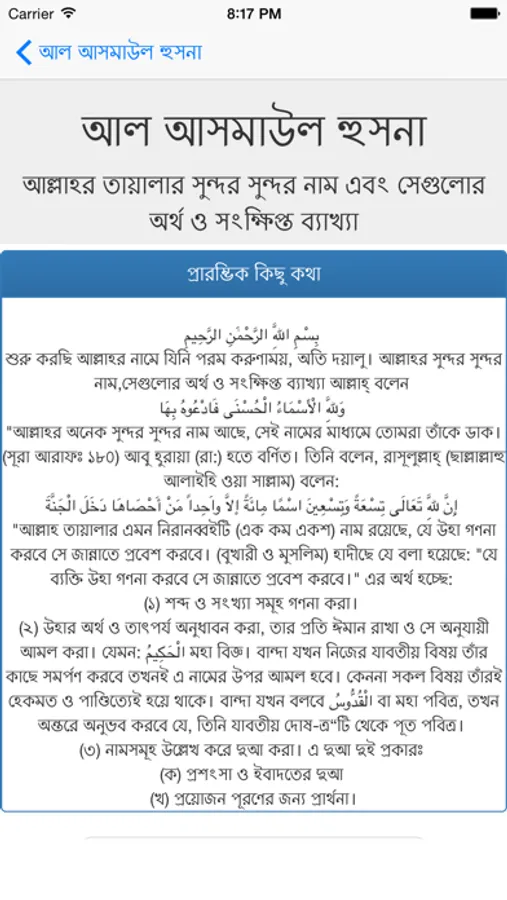 It's an app that gives the 99 names of Allah with short description.
