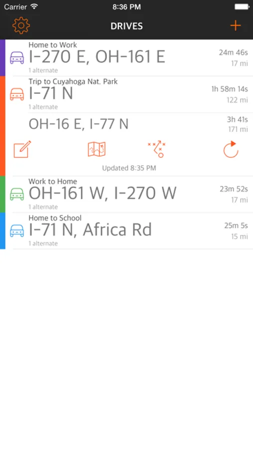 Want to set a reminder so that you leave at the witching hour? Easy Drive can create an event on your Calendar in advance for the appointed time with the fastest route information.