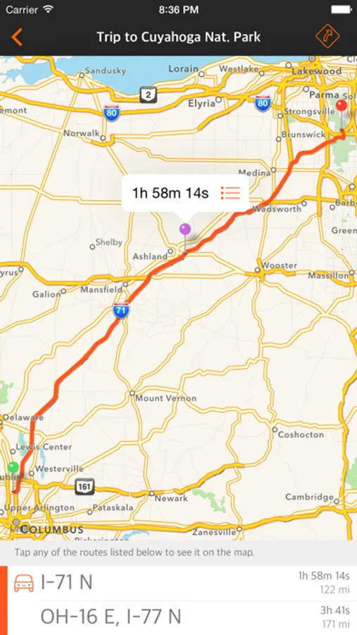 Found the fastest route but want detailed directions too? See every turn of every route directly on the detailed map. Need more details? Drill down into the turn-by-turn list.
