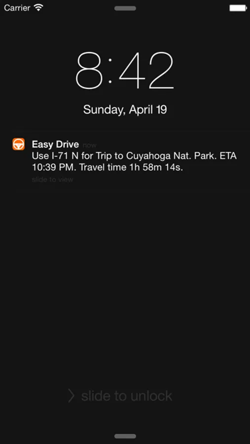 Easy Drive is designed to keep you one step ahead in your busy life. With the ability to set multiple Drives and schedules, Easy Drive can notify you of the fastest route to your destination. Whether its your daily commute to work or a weekend getaway Easy Drive can inform you of the fastest route as soon as you get going.