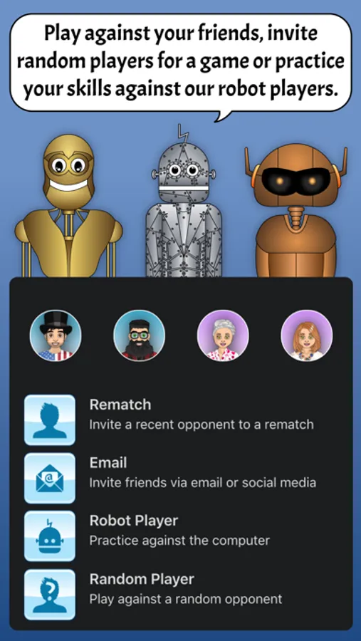 Want to play a lot? No problem! Invite several people to play a game and quickly go from one game to the next if you want to.