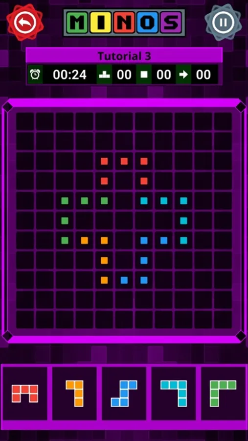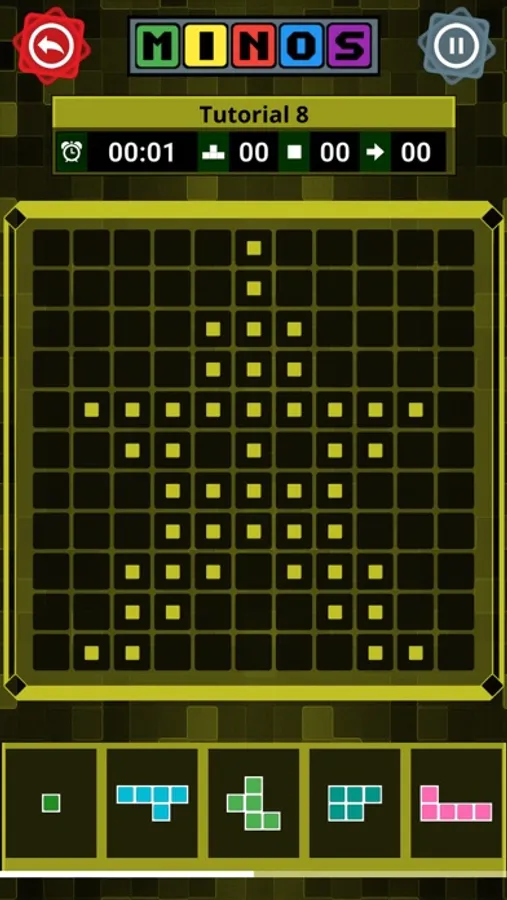 Minos is a puzzle game where you try to fill a grid with the pieces available.