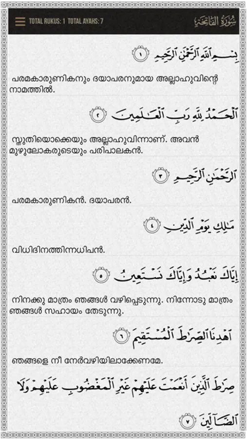 • Quran Malayalam the ultimate translation of Quran in Malayalam language and audio recitation from trusted sources. One application after which you do not need to download any other Quran App for Malayalam translation.