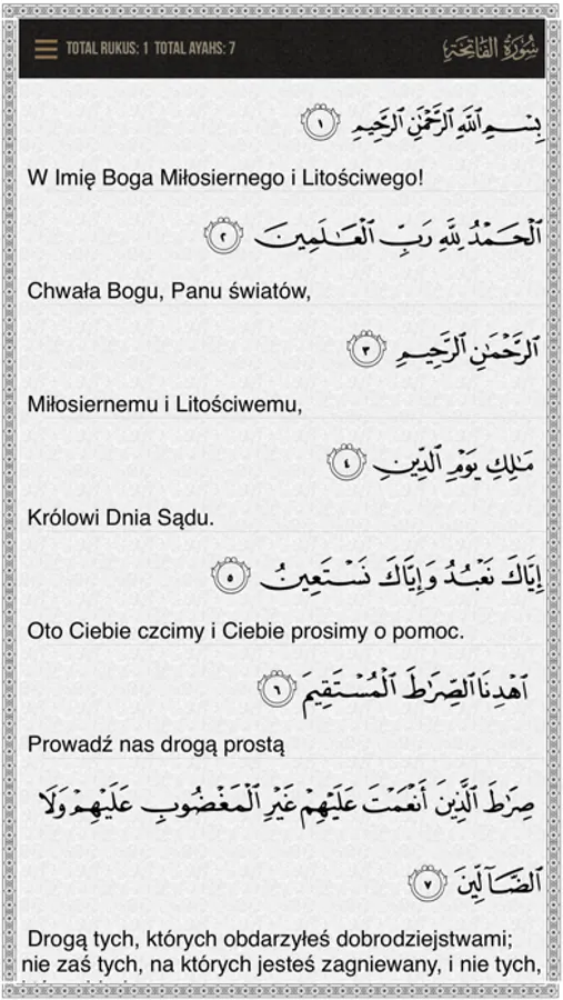 • Quran Polish the ultimate translation of Quran in Polish language (Józefa Bielawskiego) and audio recitation from trusted sources. One application after which you do not need to download any other Quran App for Polish translation.