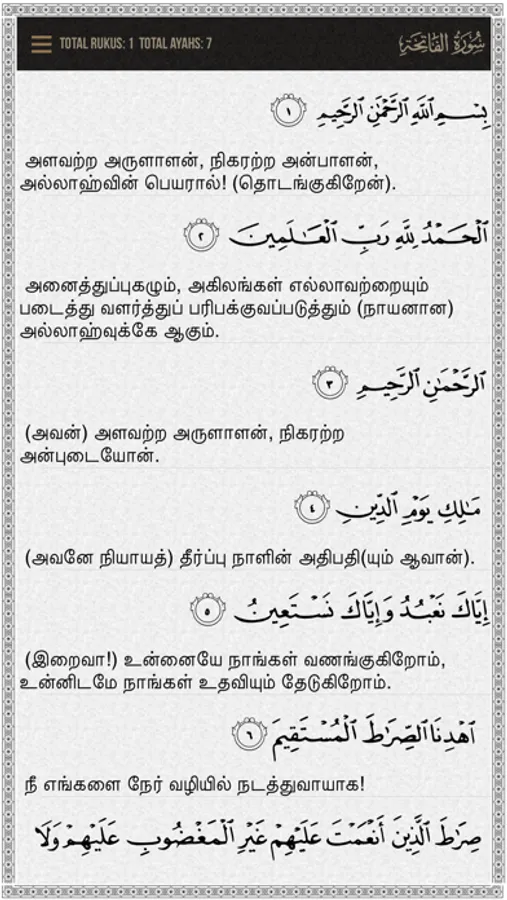 • Quran Tamil the ultimate translation of Quran in Tamil language (Jan Turst Foundation) and audio recitation from trusted sources. One application after which you do not need to download any other Quran App for Tamil translation.