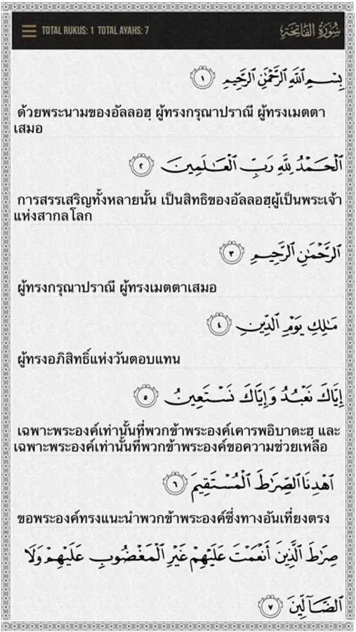 • Quran Thai the ultimate translation of Quran in Thai language (King Fahad Quran Complex) and audio recitation from trusted sources. One application after which you do not need to download any other Quran App for Thai translation.