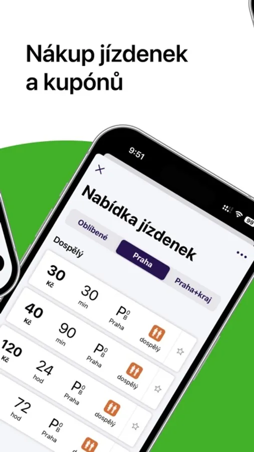 The PID Lítačka mobile app is a comprehensive guide to transport in Prague and the Central Bohemian Region. It enables you to find current public transport connections based on your location and also recommends the type of ticket you need for your journey. The app works with up-to-date data about closures, disruptions, and so on. If you wish to use the app for buying tickets regularly, you can create an account and have your tickets safely under control. You can store your payment card in the app and pay with a single click, or use Google/Apple Pay. The app allows you to purchase tickets in advance and activate them gradually before boarding a vehicle. Furthermore, you can purchase a subscription ticket (coupon) from 1 month up to 1 year directly in the app.