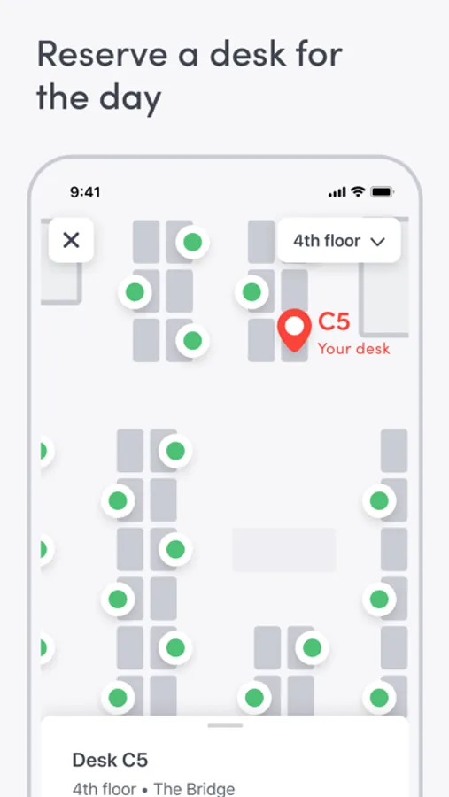 Know where to go and who to meet in the office. Find where your coworkers are sitting, book meeting rooms, see visitor details, and know where to pick up deliveries–all from the interactive workplace map.