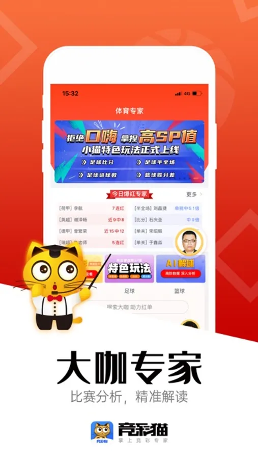竞彩猫是一款专门表达体育观点的APP。目前拥有多位国内解说大咖、知名自媒体人入驻发声,以他们得天独厚的优势点评比赛、以独特的体育视角为球迷答疑解惑。这里不生产体育新闻,这里没有长篇大论,这里只陪各位球迷一起看比赛、聊比赛。