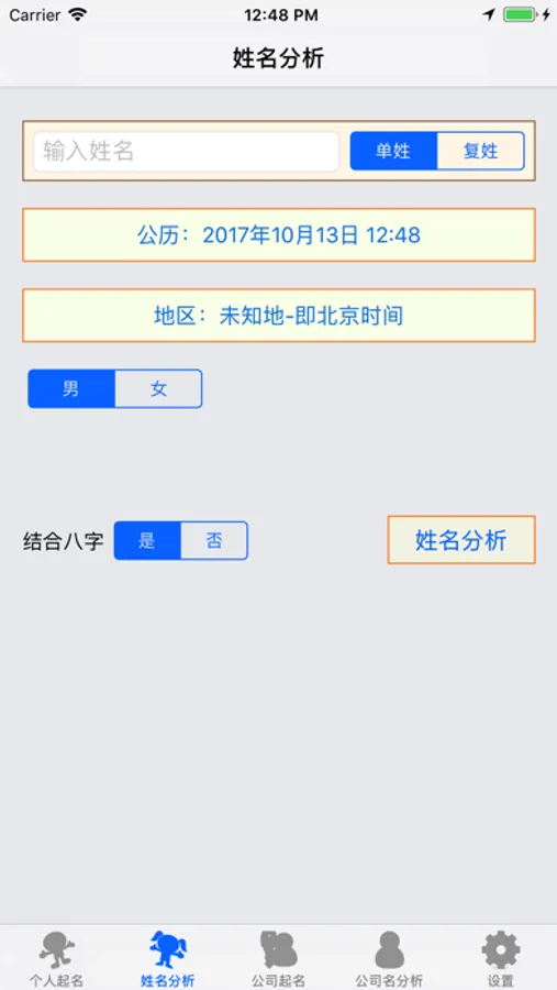 软件内容有:个人起名、姓名分析、公司名分析、公司起名、其他功能等。起名字库里有7300多个汉字。