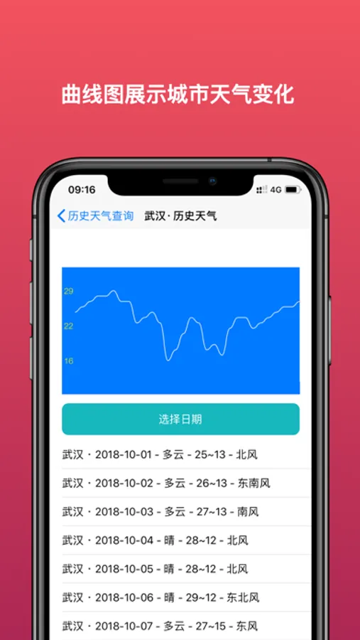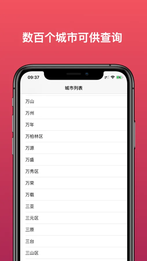 本软件支持上百个常见中国的城市和县,可以根据日期查询历年的气候,包括天气情况,最高温度,最低温度等数据。